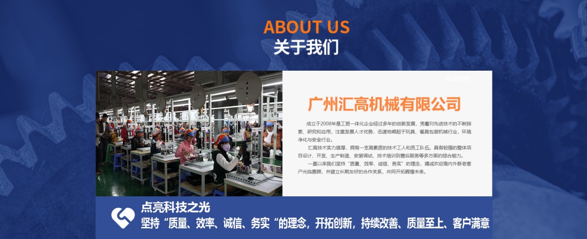 廣州匯高機(jī)械設(shè)備有限公司,成立于2008年是工貿(mào)一體化企業(yè)經(jīng)過(guò)多年的創(chuàng)新發(fā)展,憑著對(duì)先進(jìn)技術(shù)的不斷探索、研究和應(yīng)用,注重發(fā)展人才優(yōu)勢(shì),迅速地崛起于玩具、餐具包裝機(jī)械行業(yè),環(huán)境凈化與安全行業(yè)。